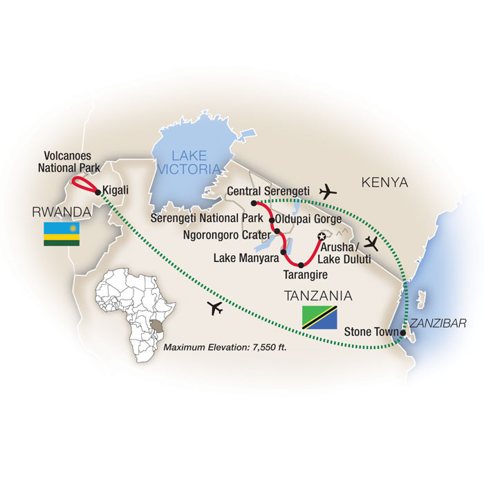 Embark on an unforgettable adventure in Tanzania searching for the African “big five” and gaining insights into the culture of the indigenous Maasai. Discover the epic, wildlife-rich Ngorongoro Crater and the rippling golden plains of the Serengeti; tour a Maasai village; and explore the area around the Olduvai Gorge, which has been occupied by humans—and their earliest ancestors—for almost two million years. |