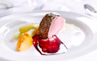 - Four-course dinners with choice of appetizers, soups, salads, entrées and desserts or cheese