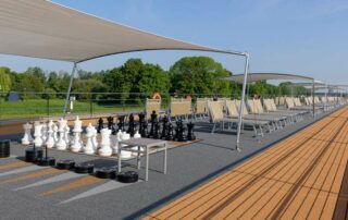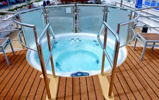 - Sky Deck with premium lounge chairs, whirlpool, shade awnings, & outdoor deck game area