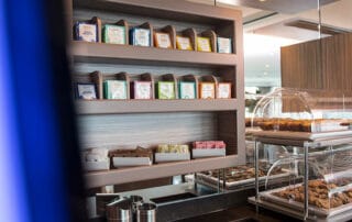 - Self-serve beverage station with complimentary tea, hot chocolate & premium coffees, including decaf options