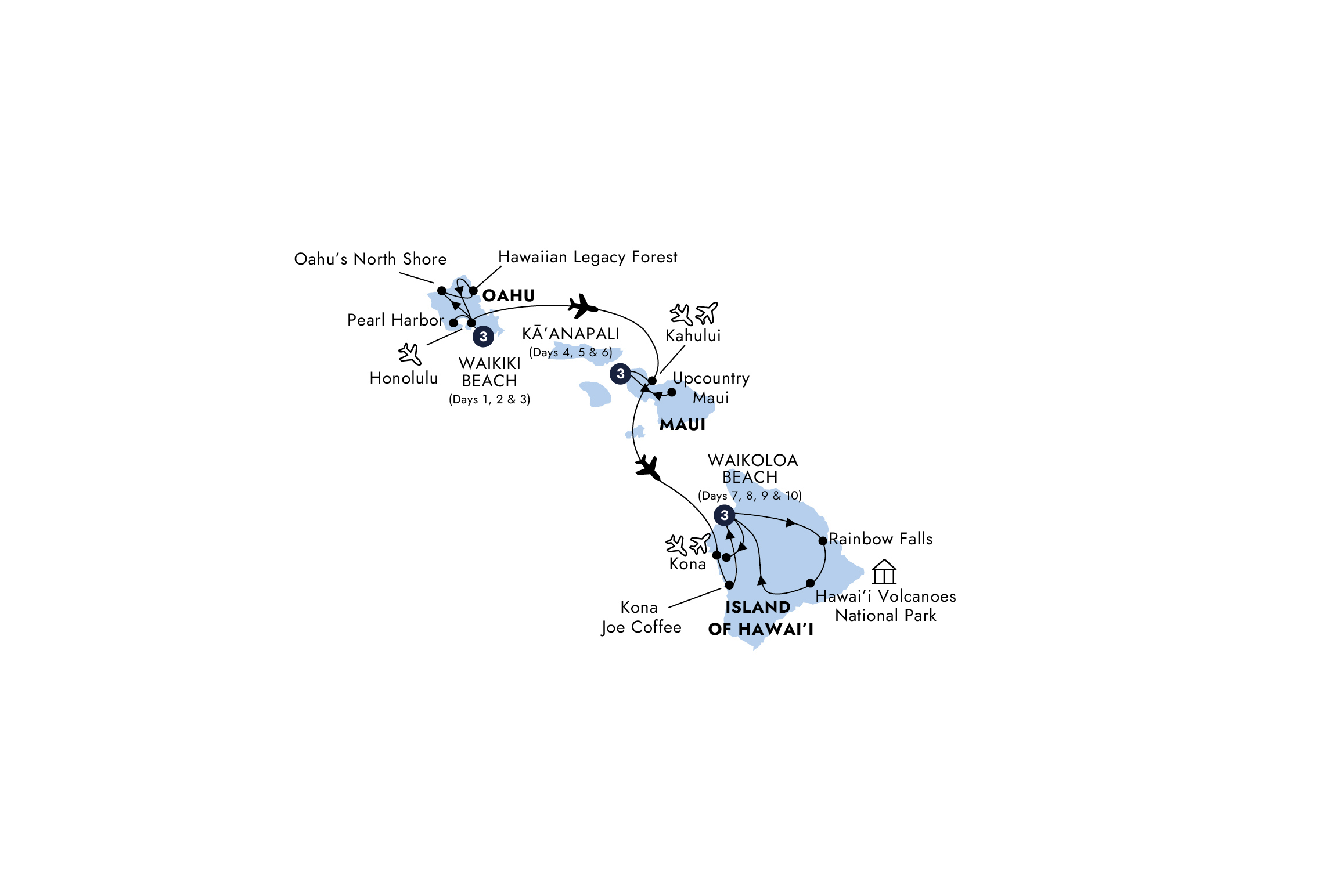 | Hawaii with Oahu, Maui & the Big Island - Small Group  Hawaii’s traditional greeting, Aloha, embodies hospitality, respect, love and welcome. Experience the magic of these tropical islands and meet its gentle people on your unforgettable Hawaiian guided vacation. Look beyond the swaying hula dancers, ukuleles and floral shirts to celebrate local traditions and flavors. An incredible journey awaits as you get to know Oahu and Maui intimately while having time to relax at your oceanfront resorts. |