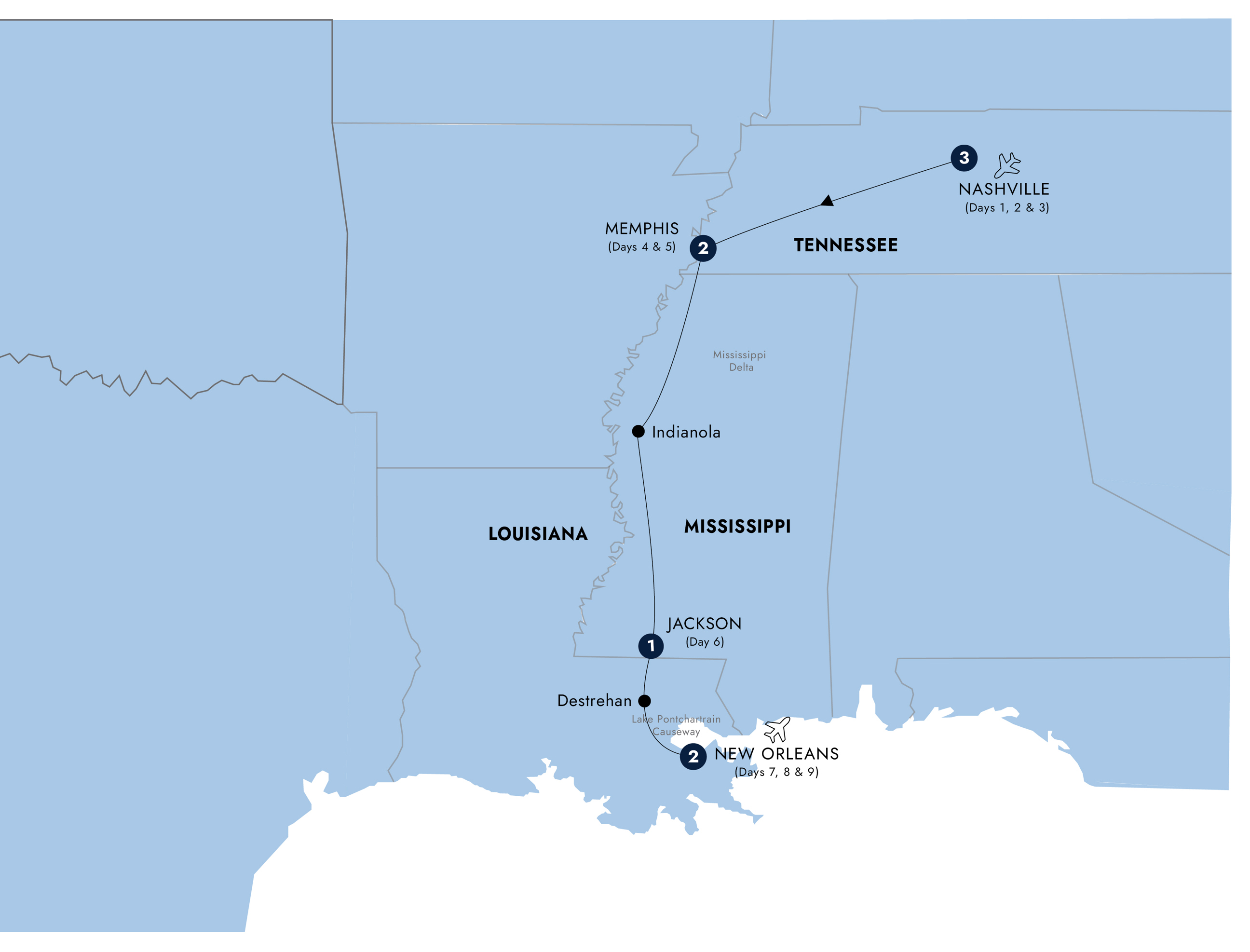 | Soul of the Deep South, a Women-Only Tour  Experience the soul of Nashville as you stroll through the Broadway entertainment district, surrounded by the lights and sounds of country music legends. Enjoy a guided tour of Studio B and meet a female songwriter at the Country Music Hall of Fame who will share her industry insights. In Memphis, participate in a MAKE TRAVEL MATTER® Experience with a tour focused on Courageous Women Fighting for Women's Rights, Civil Rights, and Justice for All, followed by a private tour of the Stax Museum of American Soul Music. Explore New Orleans through the Great Women of the Mississippi River Delta tour, discovering the remarkable women who shaped the city. |