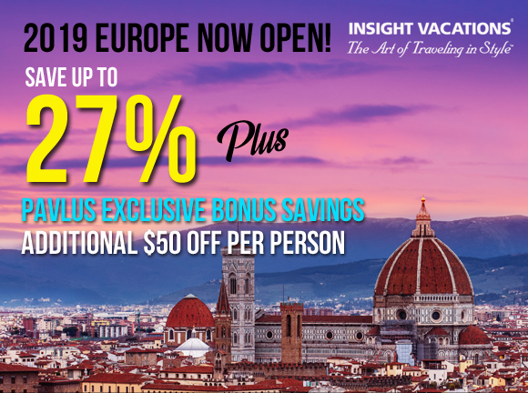 Disclaimers: Save 10% with Early Payment Discount when you pay in full by 31 January 2019. If you want the best possible deal on your 2019 vacation to Europe, make sure you book early! Deposit must be paid within 3 days of booking. Some trips are excluded and terms and conditions apply. Savings apply to the land-only portion of tours featuring the ‘Early Payment Discount’ in the price panel. Tours must be paid in full by January 31, 2019 and not less than 45 days prior to your travels with Insight Vacations and 80 days prior to your travels with Insight Vacations for tours featuring air, train or cruise.We suggest you book early as discounts may be reduced or withdrawn as demand for your selected tour increases! You may combine with other discounts where applicable. We highly value our frequent travellers and would like you to continue to travel with Insight or one of our sister TTC brands. Therefore, all past Insight guests are eligible for a 5% savings on the land portion of their next TTC holiday, or up to $250 on their next river cruise. In recognition of our loyal customers, Insight now extends automatic membership into our Club Bon Voyage, to all travelled guests. *Insight’s Club Bon Voyage and 5% savings is available after your initial trip is completed. It is limited to one saving per trip, and will be applied against the higher priced of two trips, if you book two at once. This discount is not available on extra night stays, airfares, taxes and fees, flights supplements and surcharges and airport transfers. |