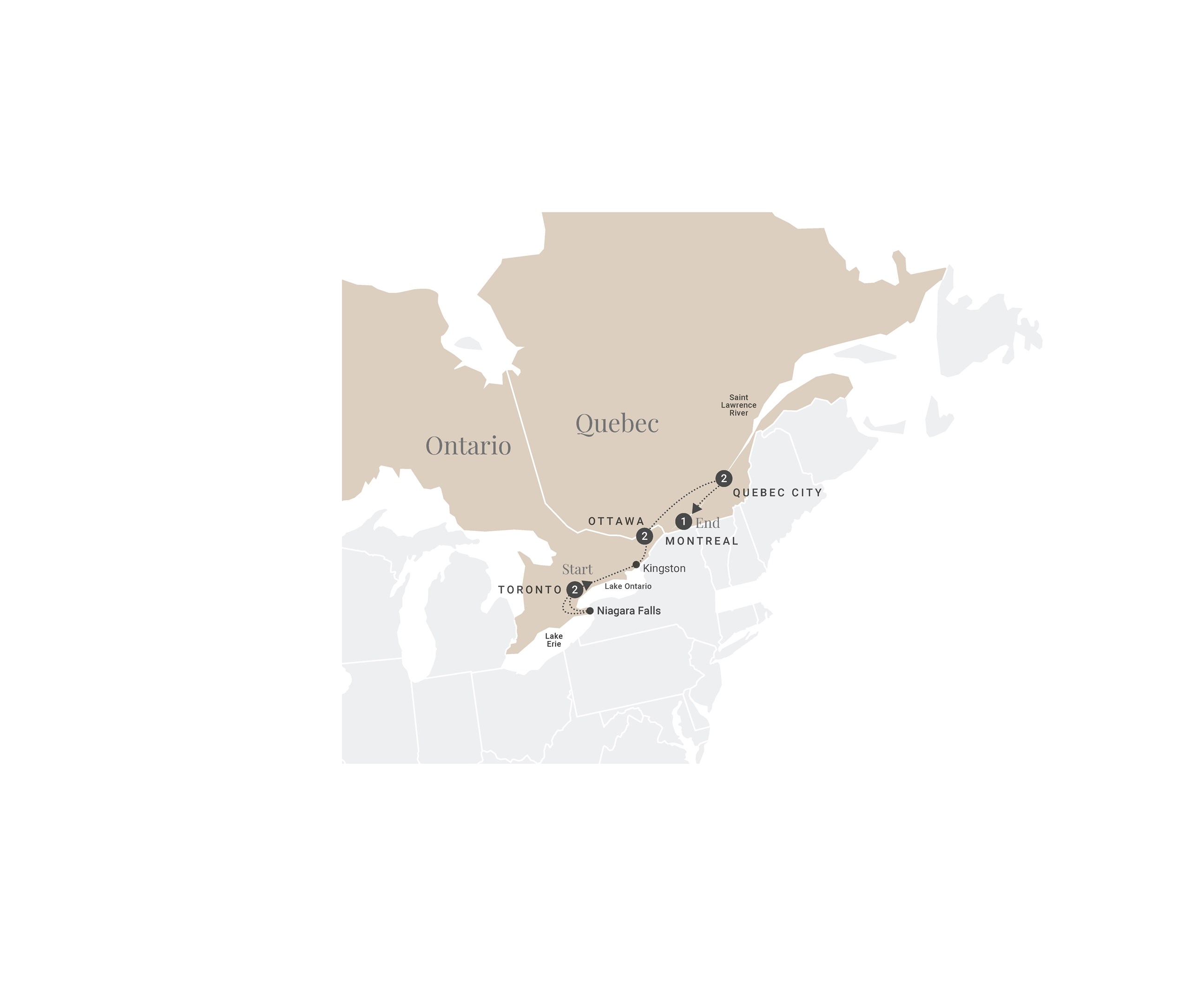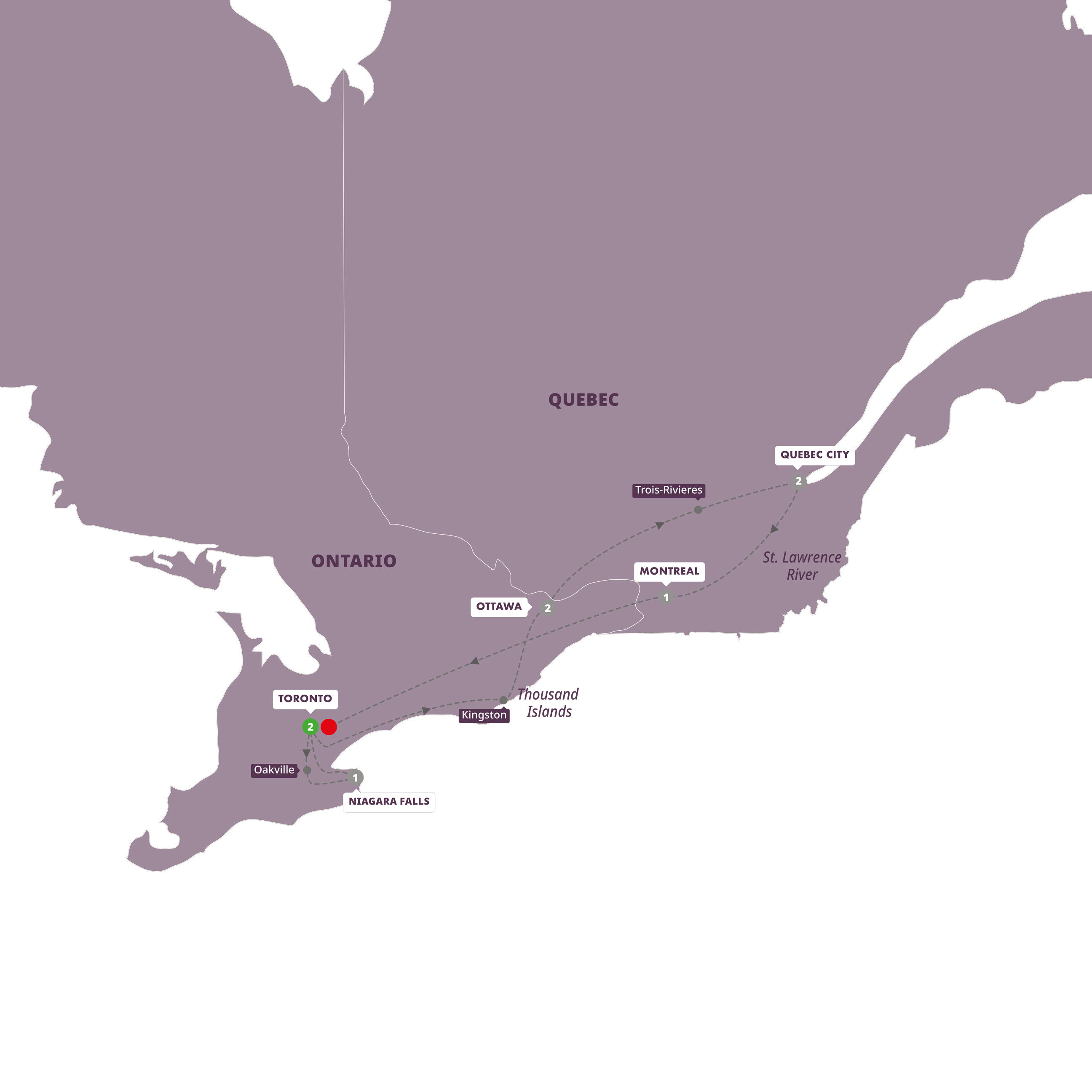 This itinerary is also available from Quebec City to Vancouver based on your travel preference.
