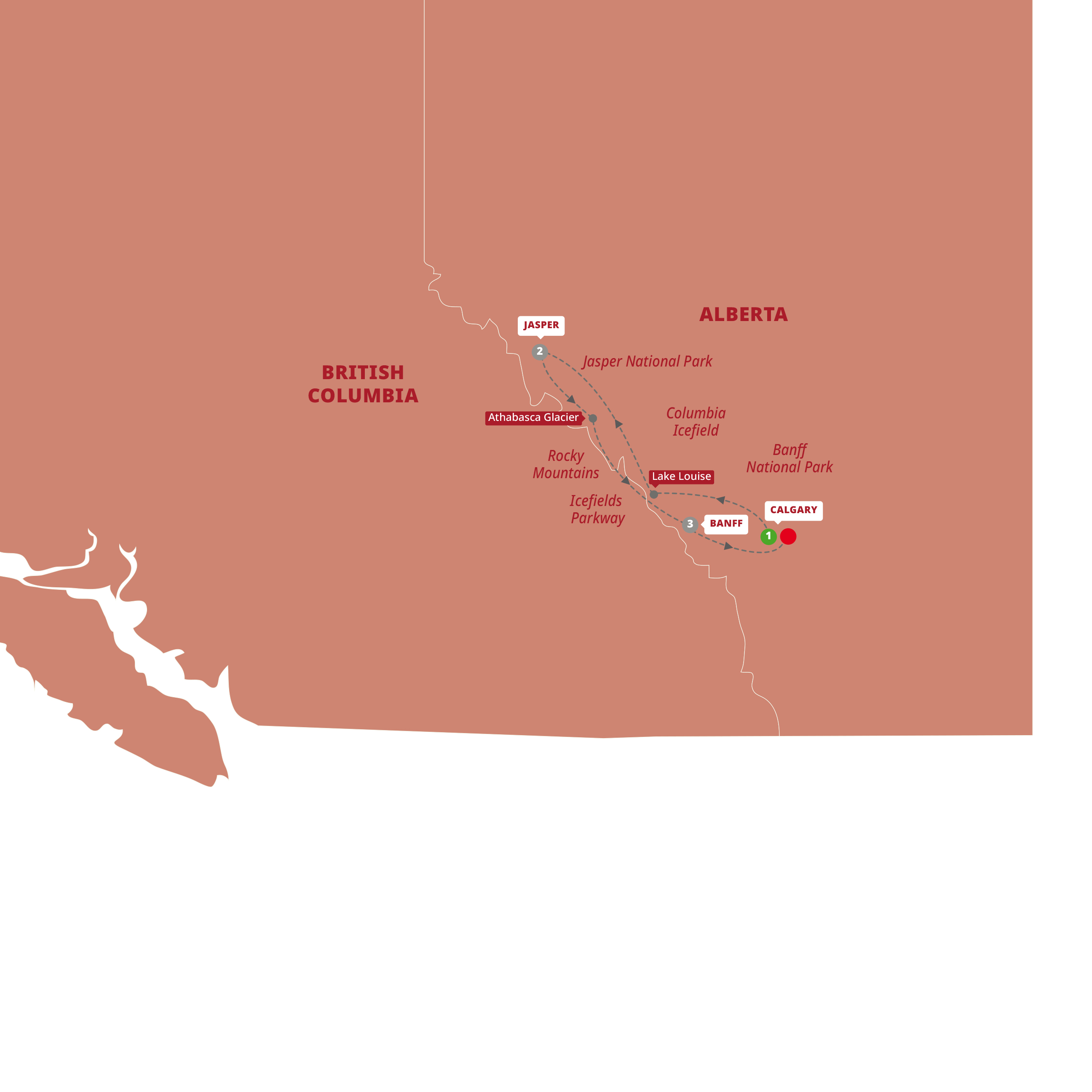 | Majestic Rockies 2026 - 11 Day Tour from Vancouver to Calgary  Feet on the ground or head in the clouds? Set your sights on both on this heady tour of the Canadian Rockies. A sunny gondola ride to Banff’s Sulphur Mountain, a private breakfast at Whistler’s Squamish Lil’wat Cultural Centre, and a special dinner inside the original greenhouse at Victoria’s lush Butchart Gardens are just some of the ways to take your travel dreams to new heights through Alberta and British Columbia. Bold and breathtaking views are served from Vancouver to Calgary on the breezes of Sun Peaks, the glacial wonder of the Columbia Icefield, the alluring blue hue of Lake Louise, and the magnificent canyons and gorges of Jasper National Park. A panoramic cruise along the crystal waters of Maligne Lake to remote Spirit Island – one of Canada’s most cherished and photographed places – elevate this journey through Western Canada. PLUS, your tour includes your choice of excursions in Victoria so you can plan your day your way. |