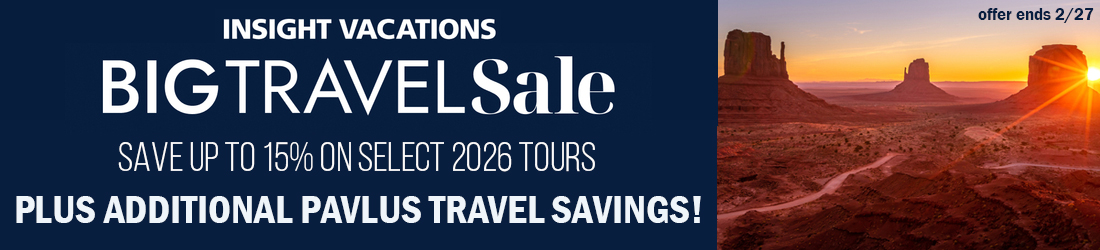 Exclusive offer on new bookings only. $200 off per person on Insight Vacations trips. Based on availability and can be withdrawn at any time and without notice. Must mention promo code PP20PAVFEB200 at time of booking and must book between February 1, 2020 and February 29, 2020 to receive the offer. Valid for travel February 1, 2020-December 31, 2020. Combinable with the Early Payment Discount and year-round savings. Payment: A non-refundable deposit of $200-$350 per person is due within three days of booking with full payment 60 days prior to departure. Further restrictions apply. Contact your Travel Advisor for details. CST No. 20687545-20.